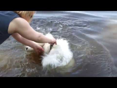 Fido oli tosi nolo, se ei tajua uimisesta yhtään mitään, ihan tosi nolosti piti taluttaa veteen ja sit se tosi, tosi nolosti vieri vielä kiveen. Tässä videotodiste: